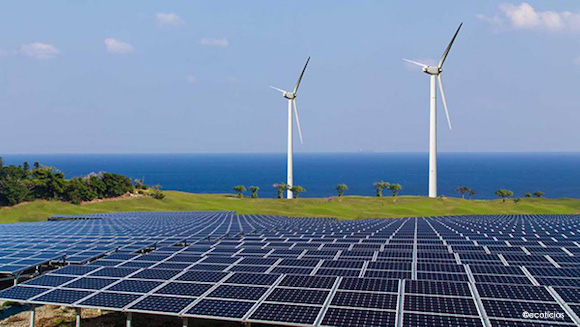 自2015年《巴黎协定》正式通过后,国际社会与商业机构陆续承诺向100%可再生能源转型。47个气候脆弱国家(CVF)在马拉喀什气候大会期间共同承诺2050年前实现由100%可再生能源供能。由于全球光伏和风电成本大幅下降,可再生能源增长势头迅猛。2017年,太阳能光伏发电装机总量同比增加33%,达98吉瓦。光伏新增装机容量大于燃煤、天然气和核电净增装机容量之和。此外,全球风电新增装机容量52GW,也对可再生能源总装机容量起到了扩充作用。截至2018年2月,全球已有超过100个城市实现至少70%的电力需求由可再生能源提供。